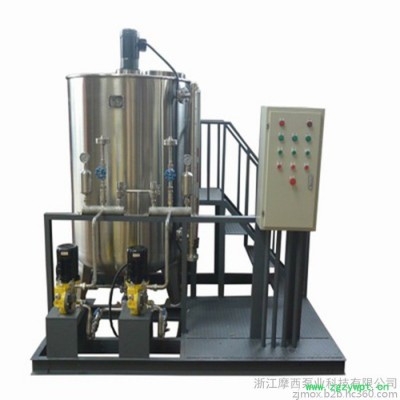 联氨由水射器吸入计量系统,然后按比例加入溶配系统与除盐水或冷凝水混合均匀,由计量投加系统投加到锅炉给水中去。投加控制可采用手动方式,也可根据上位系统输出的控制信号,进行自动控制,自动投加。
