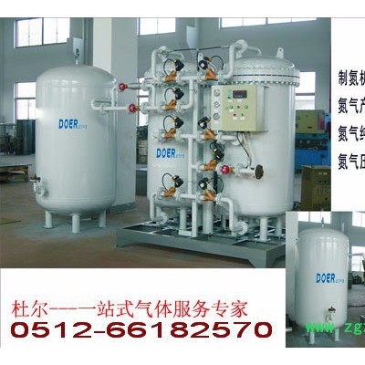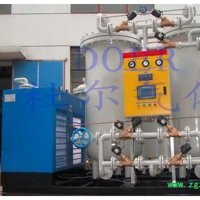 碳分子筛变压吸附(简称:PSA)制氮装置,是一种新型的空气分离的高新技术设备,以压缩空气为原料,碳分子筛为吸附剂,采用变压吸附流程制取氮气。在常温常压下,利用空气中的氧和氮在碳分子筛表面的吸附量的差异及氧和氮在碳分子筛中的扩散速率不同,通过可编程序控制器控制气动阀的启闭,实现加压吸附、减压脱附的过程,完成氧、氮分离,得到所需纯度氮气,氮气的纯度和产气量可按照客户要求调节。本公司生产的DFD系列普氮型制氮装置,氮气纯度为95%--99.999%,产气量为1Nm3 /h--3000Nm3 /h。 如果客户要求高纯度的氮气,则可以在DFD制氮装置后面配套我公司生产的加氢或加碳脱氧系列氮气纯化装置,纯度可以达到99.9999%,露点达到-70°C,氧含量为1ppm的高纯氮气。 PSA制氮机的特点: 1、成本低:PSA先进工艺是一种简便的制氮方法,开机后几分钟产生氮气,能耗低,氮气成本远远低于深冷法空分制氮和市场上的液氮。2、性能可靠:进口微电脑控制,全自动操作,无需要特别训练的操作人员,只需按下启动开关**可自动运转,达到连续供气。