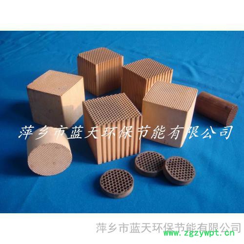 漆包机用蜂窝陶瓷催化剂载体:主要处理一氧化碳、烃类及其含氧衍生物的工业有机废气处理,其主要特点是用蜂窝陶瓷为载体,并以γ-Al2O3为二载,涂覆以铂、钯为主的贵金属,具有气体流动阻力低,反应起始温度低、活性高、空速适应范围广,当烃类有机物浓度在2000-8000mg/m3范围,空速10000-30000h-1,反应气入口温度180~300℃条件下,净化效果≥98%,可受900℃高温冲击,使用寿命长,不少于7500小时,应用范围:食品、机械、化工、仪器仪表、烘漆喷漆等行业。