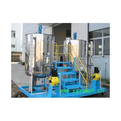 简单型一体化加药设备 根据原料形态的不同,可分为型SSJY-1和SSJY-2型两种。 SSJY-1型主要含有贮药罐和投加计量泵,贮药罐中不设搅拌器,可直接投加液态的化学药剂。设备不需复杂的控制信号进行控制,当人工设定好投加量后,设备可连续自动运行。设备结构简单,操作方便,能满足一些小型用户原先手动投加造成的投量不准、操作麻烦的问题。 SSJY-2型主要采用特殊设计的水力循环搅拌罐,可实现一些易溶固态药剂的溶解和投加。 性能特点: 设备具有结构简单,占地面积小,操作方便,价格便宜等特点,可投加水处理电解质、酸碱及次氯酸钠等药剂,对加药量要求并不严格的污水处理、中水处理以及医院污水等的工艺具有广泛的使用价值。 SSJY-A型全自动加药设备 性能特点:加药量**、恒定。加药能力大,适用范围广。 全自动控制,无需工人管理,操作简便、管理简单。 药剂投加量易于调节。可用于液液、固液、气液药剂溶液的配制、定量投加。 SSJY-B型全自动加药装置 加药装置主要特点 1、功能配置全,安全性高,性能稳定 2、集装式,便于运输、安装、维护 3、独立电控箱,便于安装调试(亦可配置远程/自动控制) 4、溶液箱材质:PE、碳钢、碳钢衬胶、304(316)不锈钢 5、搅拌器材质:碳钢、碳钢衬胶、304不锈钢、316不锈钢 6、计量泵过液分材质:UPVC、PVDF、碳钢、304不锈钢、316不锈钢 技术参数: 设备名称 组合形式 液箱容积 计量器 电器负荷 外形尺寸 流量 压力 加氨装置 一箱二泵 1.0 40 1.6 3 1600×2400×2600 二箱三泵 58 2.5 4 3000×2400×2600 加联氨装置 一箱二泵 40 1.6 3 1600×2400×2600 二箱三泵 58 2.5 4 3000×2400×2600 加磷酸盐装置 一箱二泵 30 20 6 1600×2400×2600 二箱三泵 47 24 10 3000×2400×2600 加阻垢剂装置 一箱二泵 58 1.6 4 1600×2400×2600 二箱三泵 160 1.6 6 3000×2400×2600 注:组合加药装置形式可根据用户现场情况确定 加药装置定货须知: 1、告知用于何种加药。 2、箱泵配备,一般为一箱两泵一台电动搅拌器组成一整套系统,亦可选两箱四泵,两箱多泵,多箱多泵多种结构。 3、控制系统:分半自动化和全自动控制。 4、压力及药箱容积。