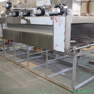 本机的传动主要采用不锈钢链条或不锈钢网带,用于不同物料生产,可根据不同要求任意调节适宜的速度运行。本机电热元件选用乳白色石英玻璃管为加热元件,具有辐射系数高、能耗低、升温快等特点。本机设有一个送风口及两个排风口,并设有蝶阀风门控制风量。本机设有预热区、恒温区、降温区、冷却区等区域,温度范围有50-300℃和50-400℃两种。本机除机架外,全部采用不锈钢材料制作,保温材料采用硅酸铝纤维,保温性能好等优点。 本机另设配电柜一台,有电压表、电流表及数显温控仪,还设有电机调速器等电器配置,确保机器正常运转。