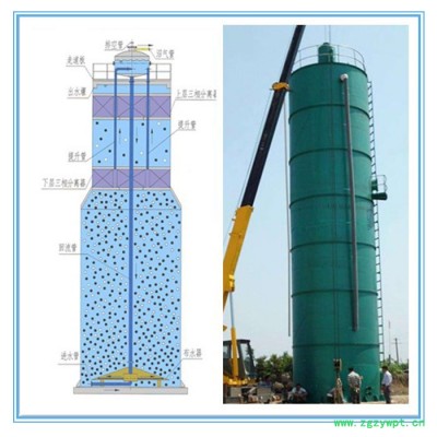 IC厌氧反应塔 特点 (1)容积负荷高:IC反应器内污泥浓度高,微生物量大,且存在内循环,传质效果好,进水有机负荷可超过普通厌氧反应器的3倍以上。 (2)节省投资和占地面积:IC反应器容积负荷率高出普通UASB反应器3倍左右,其体积相当于普通反应器的1/4~1/3左右,大大降低了反应器的基建投资[5]。而且IC反应器高径比很大(一般为4~8),所以占地面积特别省,非常适合用地紧张的工矿企业。 (3)抗低温能力强:温度对厌氧消化的影响主要是对消化速率的影响。IC反应器由于含有大量的微生物,温度对厌氧消化的影响变得不再显著和严重。通常IC反应器厌氧消化可在常温条件(20~25 ℃)下进行,这样减少了消化保温的困难,节省了能量。 (4)具有缓冲pH的能力:内循环流量相当于**厌氧区的出水回流,可利用COD转化的碱度,对pH起缓冲作用,使反应器内pH保持**状态,同时还可减少进水的投碱量。 (5)内部自动循环,不必外加动力:普通厌氧反应器的回流是通过外部加压实现的,而IC反应器以自身产生的沼气作为提升的动力来实现混合液内循环,不必设泵强制循环,节省了能源消耗。 (6)出水稳定性好:利用二级UASB串联分级厌氧处理,可以补偿厌氧过程中K s高产生的不利影响。 (7)启动周期短:IC反应器内污泥活性高,生物增殖快,为反应器快速启动提供有利条件。IC反应器启动周期一般为1~2个月,而普通UASB启动周期长达4~6个月。 (8)沼气利用价值高:反应器产生的生物气纯度高,CH4为70%~80%,CO2为20%~30%,其它有机物为1%~5%,可作为燃料加以利用。 IC厌氧反应器适用于有机高浓度废水,如,玉米淀粉废水、柠檬酸废水、啤酒废水、土豆加工废水、菊苣加工废水、酒精废水、纸浆废水。
