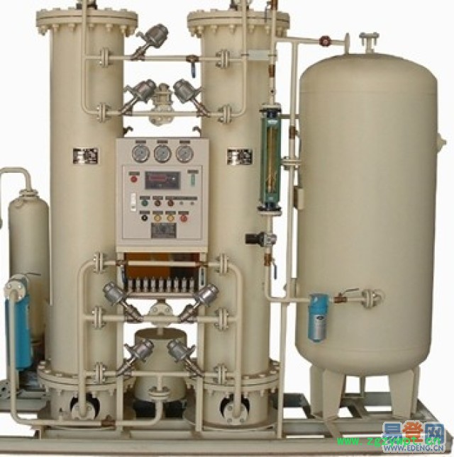 制氮设备(也称制氮机,制氮装置)工作流程是:空气经压缩机压缩,进入冷干机进行冷冻干燥,以达到变压吸附制氮系统对原料空气的露点要求。再经过过滤器除去原料空气中的油和水,进入空气缓冲罐,以减少压力波动**,经调压阀将压力调至额定的工作压力,送至二台吸附器(内装碳分子筛),空气在此得到分离,制得氮气。原料空气进入其中一台吸附器,产出氮气,另一台吸附器,则减压解吸再生。二台吸附器交替工作,连续供给原料空气,连续产出氮气。氮气送至氮气缓冲罐,通过流量计计量,仪器分析检测,合格的氮气备用,不合格氮气放空(刚开车时)。