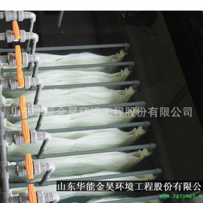 过滤机理 (1)物理过滤 污水在两片液中膜之间流动,清洁的水在压力或外部抽吸力的作用下流入液中膜的滤板内,再通过液中膜的取水口流出至集水池,从而达到固液分离的作用。 (2)生物膜过滤 板式膜除了具有普通膜的物理过滤原理外,在实际运行中,在膜的薄膜层外,会均匀地生长一层致密的生物膜。这层生物膜对固液分离的贡献极大。大部分固体颗粒实际上是被这层生物膜截留。 MBR组件 膜组件组成及工作过程 板式膜组件由膜框架、膜支架(板式膜元件)、曝气框架、曝气管、软管、集水管组成。 膜支架**是上面介绍的板式膜元件。每个板式膜组件中可以安装**多200片膜元件。 膜框架是用来支撑膜支架的,一般用不锈钢材料制成。 曝气框架。散气框架位于膜框架的下部,为鼓风气泡提供上升通道。 曝气管。外部鼓风机的空气通过管道首先送至曝气管的主管(下部较粗的管道),再通过主管分配至曝气支管。曝气支管上有散气孔,空气通过曝气孔,经过曝气框架,吹入膜框架的空隙之间,防止膜堵塞。 软管和集水管。每个膜框架的出水口与出水软管相连接,出水软管的水再汇集至集水管**终流入集水池。