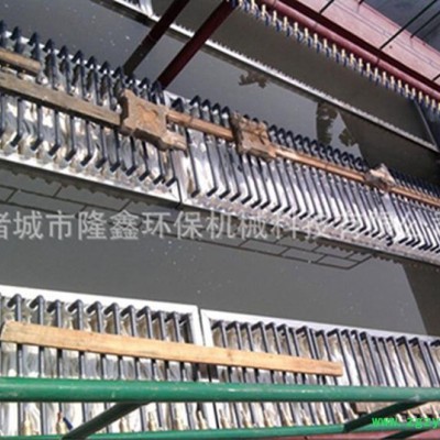 浸没式组件运行时将组件整体放入待过滤的水中抽吸泵通过集水总管将各膜堆过滤的水抽出(或重力直接流出)。各膜堆截留的杂质或污泥依然留在水体中。等到杂质浓度达到设定值时,开启排泥(或排浓)装置,降低待过滤水体中的污泥浓度,使得过滤能够稳定运行。对于MBR组件,合适的MLSS在8000-15000mg/l。