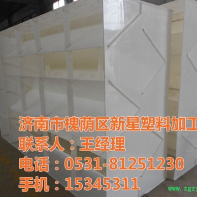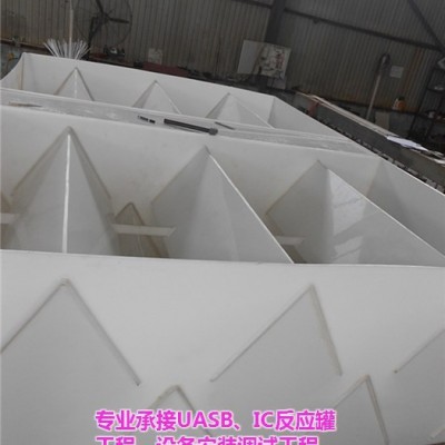 集气罩交错分布,从而保证所有的气泡在上浮过程中都会受到相应的集气罩的阻挡,从而气泡破裂,实现固气分离,集气效率高。作为优选,每一排集气罩的上侧设有与集气罩垂直固定的连接加强筋。集气罩数量较多,都是通过竖直挡板和箱体侧壁连接,连接强度十分有限,因此设置若干连接加强筋把整排的集齐罩连接在一起,增加整体强度,且每根集气罩与外侧板及竖直隔板连接时均采用集气罩贯通板壁的方式焊接,整体提高三相分离器的强度和使用寿命。作为优选,所述的积水腔的上端设有臭气管。三相分离器长期放在污水中,各种臭气会积聚在三相分离器的上端,因此每隔一段时间需要打开臭气管排放臭气。作为优选,所述的箱体的上侧设有箱盖,所述的箱体的底端外侧设有挂钩块。箱盖盖在三相分离器的上端,从而防止臭气逸出,同时也对三相分离器起到一个保护作用,防止外界的污染物进入三相分离器内,挂钩块用来安装箱体,该种三相分离器可以根据厌氧反应池的大小选择若干个组合在一起使用,适用范围更广,安装更加方便。因此,本实用新型具有能有效防止活性污泥进入集气室而造成堵塞,排气顺畅,污水处理效率高的有益效果。