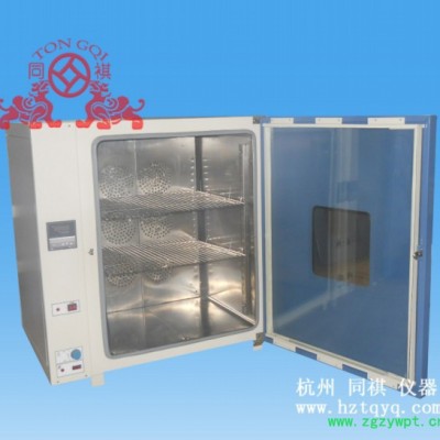 DHG-9240 ( A )电热鼓风干燥箱 (杭州同祺仪器) 一、 DHG-9240 ( A )电热鼓风干燥箱概述 DHG 系列鼓风干燥箱是供 机电、化工、塑料、轻工、生化、环保等行 厂矿企业,大专院校,科研单位及各类实验室等作物品干燥、烘焙、熔腊、热处理及灭菌等其它用途的理想设备。 不适用于挥发性物品,以免引起**。 二、 DHG-9240 ( A )电热鼓风干燥箱主要参数 1 、电源电压: 220V ± 10% ; 50HZ ± 1 2 、控温范围: RT+10 ℃~ 250 ℃ 3 、分 辨 率:± 0.1 ℃ 4 、波 动 度:± 1 ℃ 5 、功 率: 2100W 6 、定时范围: 1 ~ 9999min 7 、工作尺寸 (mm) : 600*425*750 8 、搁 板: 2 块 注: 1 、带“ A ”为镜面不锈钢内胆,不带“ A ”为镀锌板; 2 、以上数据用**度 0.1 ℃的标准温度计(头端放在工作室内几何中心),在环境温度 25 ℃,相对湿度不大于 85% 下测得; 三、 DHG-9240 ( A )电热鼓风干燥箱结构功能及特点 1 、 DHG-9240 电热鼓风干燥箱由箱体、控温系统、电加热鼓风系统组成。 2 、箱体由**钢板冲制而成,表面喷塑处理,内胆用**涂锌板或镜面不锈钢板(用户可以选择)组成,采用充实超细玻璃棉作隔热层,箱体采用大面积双层钢化玻璃观察窗。 3 、控温系统主要器件是控温仪,它是一个又单片机及外围电路组成的、双排 LED 四位显示的微电脑智能控制器,用 PID 调节方式控制加热系统,采用 Pt100 铂电阻为感温元件。控温仪还具有定时控制、控温误差修正、偏差报警保护等功能。 4 、电加热鼓风系统由电阻丝加热管、风机、风道组成。利用风机的运转,强迫工作室内冷热空气的交换循环,提高工作室内温度场的均匀性。 5 、产品具有控温精度高、过冲小、波动度小及偏差超温报警保护等优点,另可根据用户的需要选增加一个独立的超温报警保护系统,更可提高产品的安全性能。 四、 DHG-9240 ( A )电热鼓风干燥箱使用条件 1 、环境温度: 5 ℃~ 40 ℃,相对湿度不大于 85% ; 2 、周围无强烈震动源及强电磁场存在; 3 、应放置在平稳、水平,无严重粉尘,无阳光直射,无腐蚀性气体存在的室内; 4 、产品周围应留有足够空间间隙,不宜放在火灾报警器的正下方; 5 、产品供电电源电压见相关的技术指标; 6 、合理放置,调整隔板位置及数量,放入工作室物品,必须保持上下四周一定空隙,重量以隔板不被压弯变形为宜。 五、 DHG-9240 ( A )电热鼓风干燥箱使用方法 1 、把需干燥处理的物品放入干燥箱内,上、下四周应留存一定空间,保持工作室内气流畅通,关好箱门。根据干燥物品的潮湿情况,把风门调节旋钮旋到合适位置。 2 、打开电源及风机开关。 3 、设定所需温度 4 、定时的设定:按减或加键。 5 、干燥结束后,把电源开关关掉,待工作室冷却至室温后,取出箱内干燥物品,将工作室擦干。 六、 DHG-9240 ( A )电热鼓风干燥箱注意事项与维护 1 、干燥箱外壳必须良好、有效接地,以保证安全。 2 、干燥箱放置四周要有一定距离, 50cm ~ 100cm 。 3 、干燥箱内不得放入易腐、易燃、易爆物品干燥。 4 、干燥箱应放置在通风良好的室内,周围无易燃、易爆物品。 5 、当干燥箱工作室温度接近设定温度时,加热指示灯忽亮忽暗反复多次,属于正常现象,一般情况下,在测量温度达到控制温度后 30min 左右,工作室内的温度进入恒温状态。 6 、当新设定温度低于 100 ℃以下,用二次升温方式,可杜绝温度“过冲厉害”现象,例如要求 50 **次先设 40 ℃,等温度过冲开始回落后再设定到 50 ℃。 7 、干燥箱在工作时,必须将风机开关打开,使其运转,否则箱内温度和测量温度误差很大,还会影响电机和传感器烧坏。 8 、设备内外应经常保持清洁,长期不用应套好塑料防尘罩,放置在干燥环境室内。 七、 DHG-9240 ( A )电热鼓风干燥箱装箱单 1 、使用说明书: 1 份 2 、装箱清单: 1 份 3 、合格证: 1 份 4 、保证书: 1 份