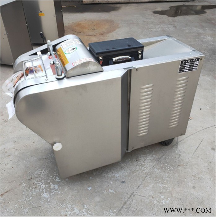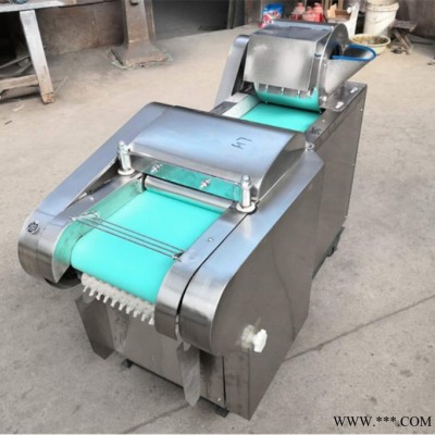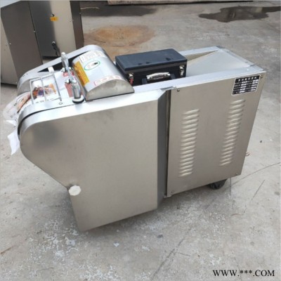包含单切机的所以功能的同时,也可切圆形如土豆、萝卜等。可将根、茎、叶等蔬菜加工成片、丝、丁、菱、曲线、花丁、花片等。切片装置用于硬菜(萝卜、土豆、水果、薯类)的切片,厚度在1-10毫米内自由调整;往复竖刀将刀成的菜片或软菜(韭菜、芹菜)切成直丝或段、曲线丝、方丁(或形刀)输送带每次移动距离1-20毫米自由调整。所调整量即为丝段的宽度;应注意被切菜直径较粗时(大于30毫米)出片效果才好,便于切丁,直径小时制的片或丁将会杂乱。被切菜加工面平整光滑、规则,组织完好,保持手工切制的效果。