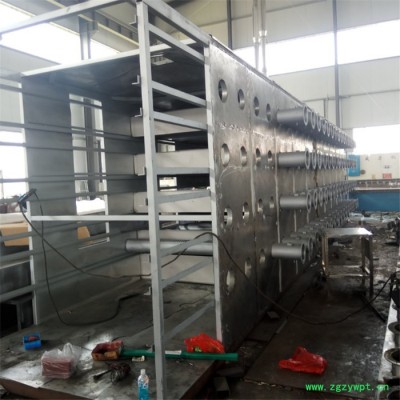 (3)多层带式干燥机:多层带式干燥机常用于干燥速度要求较低、干燥时间较长,在整个干燥过程中工艺操作条件能保持恒定的场合。层间设置隔板以组织干燥介质的定向流动,使物料干燥均匀。多层带式干燥机占地少,结构简单,广泛使用于干燥谷物类物料。但由于操作中要多次装料和卸料,因此不适用于干燥易粘着输送带及不允许碎裂的物料。