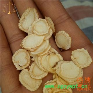 【性 状】长圆形或类圆形薄片。外表皮浅黄褐色。切面淡黄白至黄白色,形成层环棕黄色,皮部有黄棕色点状树脂道,近形成层环处较多而明显,木部略呈放射状纹理。气微而特异,味微苦、甘。