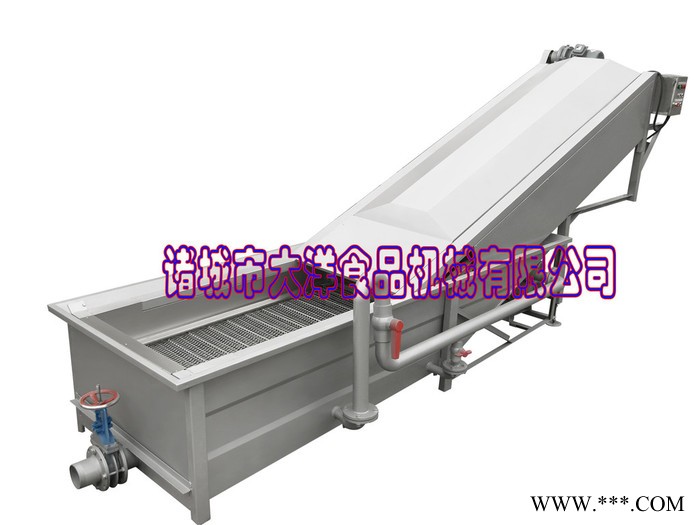 物料进入水槽,在高压水流和强力气泡的作用下,被充分打散、翻滚、清洗、传送。从物料表面洗脱的泥沙沉入底部隔离仓,不会发生翻扬回流造成再度污染。漂浮在水中的杂物、小虫、细小颗粒等,通过去杂机构和漂浮物过滤网收集,或通过溢流口排掉。细丝、头发、纤维丝等则通过毛辊清理掉。洗净的物料出水后再经喷淋清洗,输送至下道工序。本厂另有蔬菜蒸煮机、杀青机、冷却线、风干线、切片机、切丝机、切颗粒机、打浆机等配套设备。是蔬菜、食品加工、餐饮等行业的理想设备。