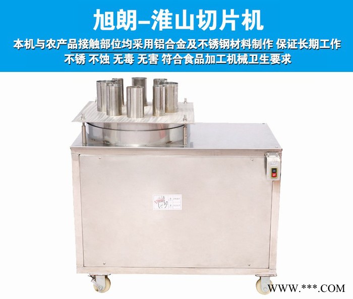 广州市旭朗机械设备有限公司生产的XL-75型多能切片机采用旋转的刀盘切削,可以将淮山、莲藕、木薯、红薯(地瓜)、萝卜黄瓜、苦瓜、土豆等农产品加工成片状,具有切面质量好,制品厚薄及大小均匀、切面组织新鲜、不破坏纤维组织。同时该机切片效率高、操作方便、能耗低、卫生、安全、高效,是农产品加工的理想设备。主要有机架、旋转刀盘、传动部分、电机、出料口等组成,适于体积中等、呈长条圆柱状的物料(如淮山、莲藕、木薯、红薯(地瓜)、萝卜)的切片。本机与农产品接触部位均采用铝合金及不锈钢材料制作,保证长期工作不锈、不蚀、无毒、无害,符合食品加工机械卫生要求。