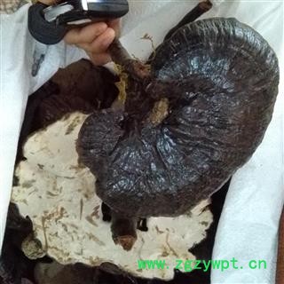性状:上表面紫黑色,有纹理,背面白色,断面有灵芝木纹