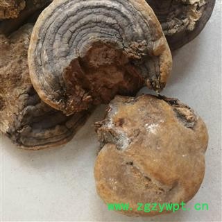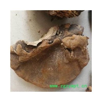 【颜色性状】:干燥的无柄菌体半圆形或马蹄形,表面褐色有裂缝平面黄色。