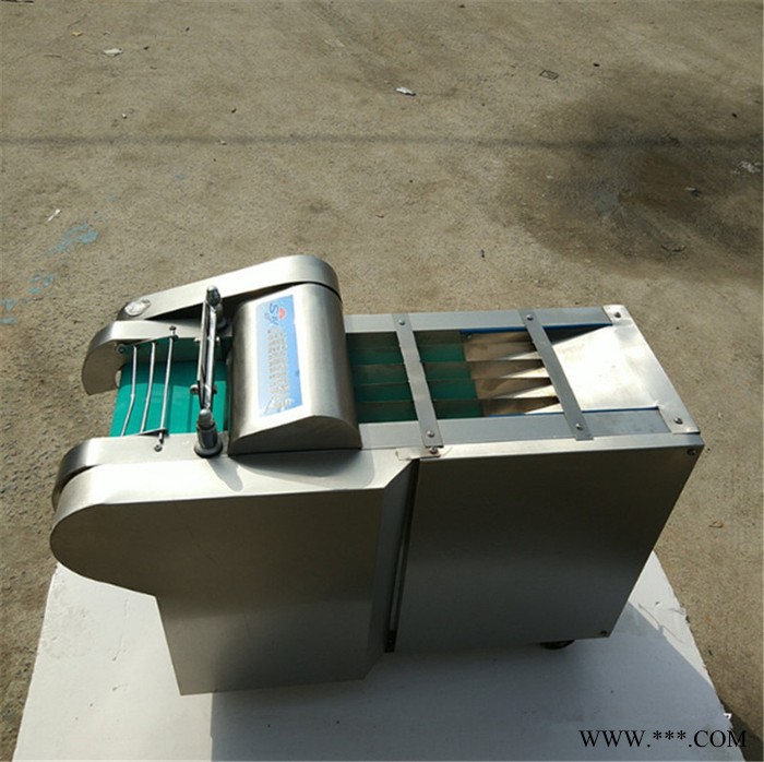 包含单切机的所以功能的同时,也可切圆形如土豆、萝卜等。可将根、茎、叶等蔬菜加工成片、丝、丁、菱、曲线、花丁、花片等。切片装置用于硬菜(萝卜、土豆、水果、薯类)的切片,厚度在1-10毫米内自由调整;往复竖刀将刀成的菜片或软菜(韭菜、芹菜)切成直丝或段、曲线丝、方丁(或形刀)输送带每次移动距离1-20毫米自由调整。所调整量即为丝段的宽度;应注意被切菜直径较粗时(大于30毫米)出片效果才好,便于切丁,直径小时制的片或丁将会杂乱。被切菜加工面平整光滑、规则,组织完好,保持手工切制的效果。