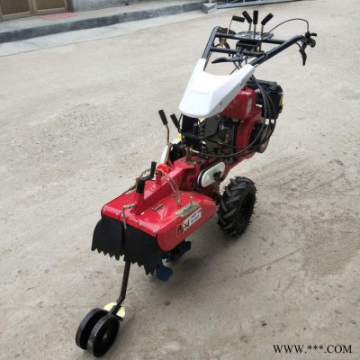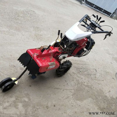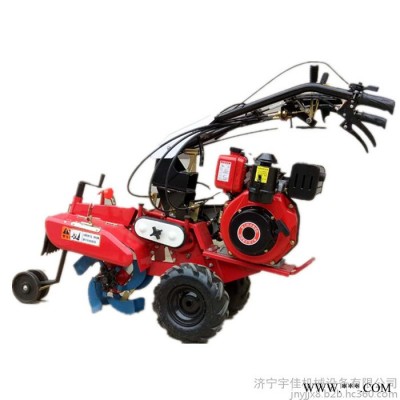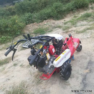 本机器包括机架、可调高低扶手,机架上设有(风冷或水冷)柴油机或汽油机、机架和扶手上设置有变速箱,变速箱的输出轴上设置有能够沿轴移动的驱动轮或链轨.传动方式主要有:全齿轮传动、皮带传动、链条传动三种传动方式.该机具有重量轻,油耗低、相对功率大,结构紧凑、机动性强、操纵轻便灵活的特点。可爬坡、越埂、阶梯性强。广泛适用于平原、山区、丘陵的旱地、水田、果园、菜地、烟地的深旋耕、浅旋耕、犁耕。配上相应机具可进行旱地旋耕、水田旋耕、抽水、开沟、喷淋、喷药除草碎土等作业,还可牵引拖车进行短途运输,是大中型农机无法**的多功能田园管理机,工作稳定可靠、使用寿命长、维修方便等特点。是进入农民家庭理想的田园管理机。