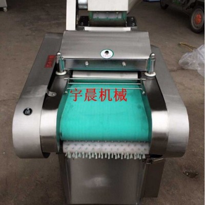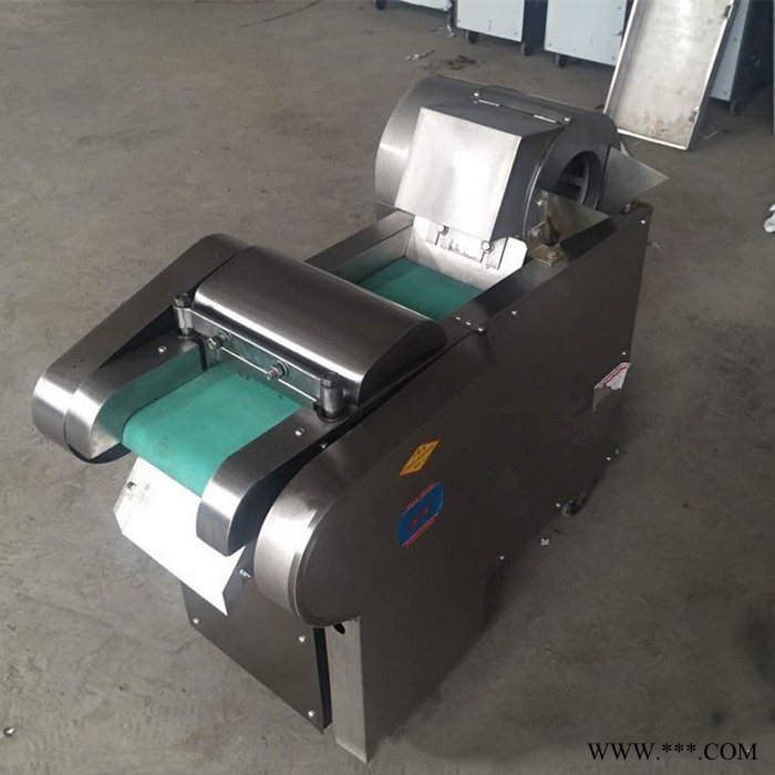 包含单切机的所以功能的同时,也可切圆形如土豆、萝卜等。可将根、茎、叶等蔬菜加工成片、丝、丁、菱、曲线、花丁、花片等。切片装置用于硬菜(萝卜、土豆、水果、薯类)的切片,厚度在1-10毫米内自由调整;往复竖刀将刀成的菜片或软菜(韭菜、芹菜)切成直丝或段、曲线丝、方丁(或形刀)输送带每次移动距离1-20毫米自由调整。所调整量即为丝段的宽度;应注意被切菜直径较粗时(大于30毫米)出片效果才好,便于切丁,直径小时制的片或丁将会杂乱。被切菜加工面平整光滑、规则,组织完好,保持手工切制的效果。