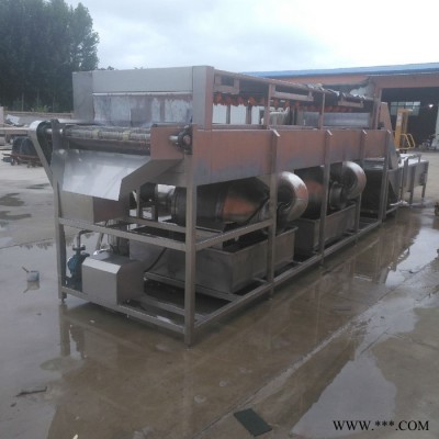 ??瓜果蔬菜喷淋清洗机;洗姜机,大姜清洗机是生姜加工中的一个重要的组成设备。生姜清洗加工有两种形式,一种是对收购或是地里产出的姜进行无损清洗,然后由大姜的收购机构或是个人对其进行批发、零售,这种方式对设备的要求高一些,生姜在清洗时清洗目的只是去掉泥沙等脏物,对姜皮不能有损伤;另一种主要是盐渍姜,清洗加工需要把大姜表皮去皮,便于腌料能进入到姜内;这两种方式所用的设备是不同的。