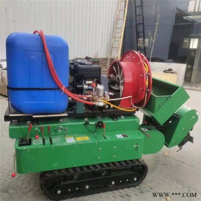 多功能 履带式开沟施肥机安装上不同的配件可以进行单独旋耕、回填、单独开沟、施肥、也可混合搭配使用。产品结实耐用,性能优越,操作方便.耐用:机身加厚,密,履带式行走,可进行原地转向。刀具都是加厚75号猛钢锻造,非常耐磨耐用,工作效率高.