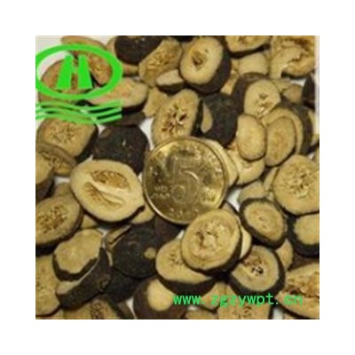 【性状颜色】:表皮棕黑色,质地坚硬,断面黄白色,圆形片状,中间多空心