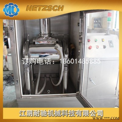 该机为卧式振动磨,物料由加料斗进入粉碎室,经振动将粉碎室内的研磨棒与物料碰撞、研磨而获得粉碎。该机配有水冷却装置,可控制粉碎室内的温度,整机按“GMP”标准设计,采用不锈钢制造,设备在全密封状态下作业,无粉尘飞扬,无环境污染。