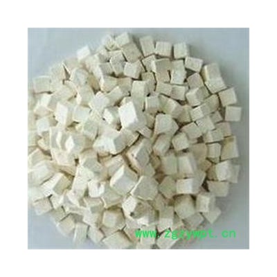药材性状:0.7cm-1cm正方体颗粒,气微,味淡,微酸,嚼之有丝