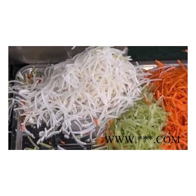 本机是模拟手工切菜原理,采用三级变速适应1--25mm切丝需要。离心式切片机构完成各种硬菜切片,自动输送到竖刀下切丝或切块。广泛适用于硬、软各种根、茎、叶类蔬菜和海带的加工,可切制片、块、丝、丁、菱形、曲线形多种花样。是蔬菜脱水、速冻、保鲜、腌渍等食品行业及厂矿、企业、机关、学校、部队等单位的食堂及宾馆、饭店蔬菜加工的理想设备。切片切丝机采用不锈**具及台面,具有外形美观,操作简单,调整轻松,维护方便, ,噪音小,高产高效等特点,工作效率高,物料控制**,切片厚度在1-3mm,切丝切段宽度在1-25mm,能不同程度的替代人工切片切丝切段,切出的产品整齐,厚薄均匀,质量远远超过手工,适用于硬、软各种根、茎、叶类蔬菜和海带的加工,可切制片、块、丝、丁、等多种花样。是蔬菜脱水、速冻、保鲜、腌渍等食品行业及厂矿、企业、机关、学校、部队等单位的食堂及宾馆、饭店蔬菜加工的理想设备。