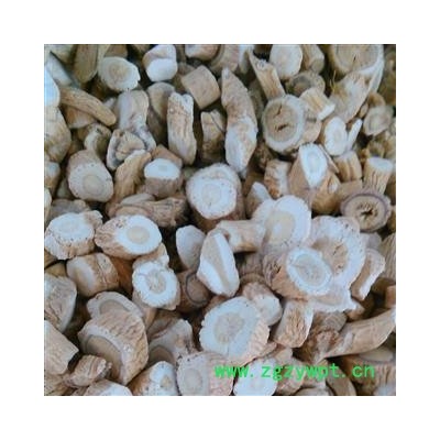 【性状】 本品呈圆柱形,稍扭曲,长10~20cm,直径0.5~1cm.。表面淡灰黄色或淡棕黄色,有纵皱纹、横长皮孔样突起及支根痕。根头略膨大,可见暗绿色或暗棕色轮状排列的叶柄残基和密集的疣状突起。体实,质略软,断面皮部黄白色,木部黄色。气微,味微甜后苦涩。