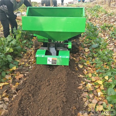 该机动力采用35马力单缸柴油机,发动机为中置,行走变速箱和传动变速箱分开,在丘陵地区开沟施肥作业时不用外加配重,箱内全部为齿轮传动,结实耐用。行走采用橡胶履带,行走直线性和通过性好,与地面接触面积大,不易打滑。开沟刀采用65锰钢自制,刀刃全部用耐磨焊条加强焊制,比普通开沟刀结实耐用至少10倍;采用蛟龙式强制排肥,下肥量可调,每米0.5~15斤,并且干的小块牛羊粪可通过施肥自动回填装置直接施肥,大块农家肥可通过单独开沟进行施肥;本机主要有六大功能:开沟施肥自动回填一次性完成(化肥)、单独开沟施土杂肥、单独除草、更换回填和旋耕装置后可进行回填和旋耕作业,更换风扇可以进行喷雾式打药功能(客户自选);该机体积小,重心低,操作灵便,可原地转向,适用于果园葡萄、果树、枸杞、蓝莓等经济作物的开沟施肥作业。