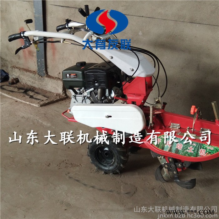 本机器包括机架、可调高低扶手,机架上设有(风冷或水冷)柴油机或汽油机、机架和扶手上设置有变速箱,变速箱的输出轴上设置有能够沿轴移动的驱动轮或链轨.传动方式主要有:全齿轮传动、皮带传动、链条传动三种传动方式.该机具有重量轻,油耗低、相对功率大,结构紧凑、机动性强、操纵轻便灵活的特点。可爬坡、越埂、阶梯性强。广泛适用于平原、山区、丘陵的旱地、水田、果园、菜地、烟地的深旋耕、浅旋耕、犁耕。配上相应机具可进行旱地旋耕、水田旋耕、抽水、开沟、喷淋、喷药除草碎土等作业,还可牵引拖车进行短途运输,是大中型农机无法**的多功能田园管理机,工作稳定可靠、使用寿命长、维修方便等特点。是进入农民家庭很理想的田园管理机。