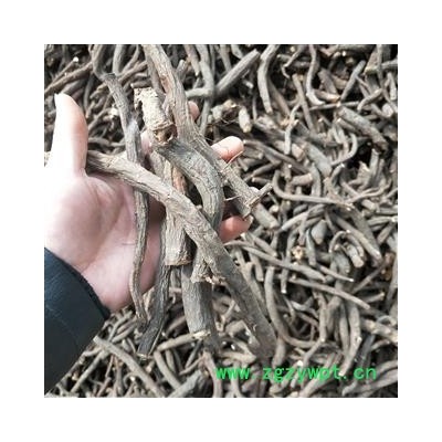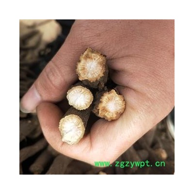 【性状】本品呈圆柱形,稍弯曲,长5~40cm,直径0.5~3cm。表面棕褐色,粗糙,有纵沟和皱纹,并有须根痕和横长的皮孔样突起,有的外皮易脱落。质硬而脆,易折断,断面粉白色或粉红色,皮部窄,木部放射状纹理明显,有的有裂隙。气微香,味微苦、酸涩。