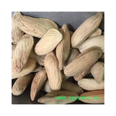 【性 状】本品呈肾形或长卵圆形,略扁。长4~7cm,宽3~4.5cm,厚1~2cm,表面黄白色或土黄色,有数条略弯的浅沟纹,并被毛状纤维。果核坚硬,内含种子1枚,摇之发响。种子表面皱缩,种皮棕绿色至暗棕色,难与种仁剥离