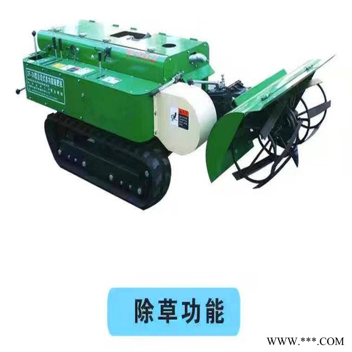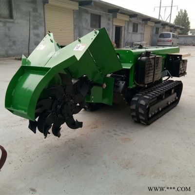 多功能 履带式开沟施肥机安装上不同的配件可以进行单独旋耕、回填、单独开沟、施肥、也可混合搭配使用。产品结实耐用,性能优越,操作方便.耐用:机身加厚,密,履带式行走,可进行原地转向。刀具都是加厚75号猛钢锻造,非常耐磨耐用,工作效率高.