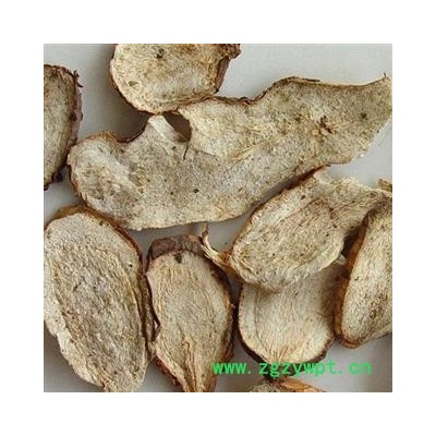 [性 状]:该品块根长圆形或纺锤形,多纵切成瓣或斜片。完整者长5-12cm,直径1.5-3.5cm。表面红棕色或红褐色,有纵皱纹、细横纹及横长皮孔,栓皮易层层脱落,脱落处显淡红棕色,剖面类白色或淡红棕色,皱缩不平。斜片呈卵圆形,长2.5-5cm,宽2-3cm,切面类白色或浅红棕色,可见放射状纹理,周边较厚,微翘起或略弯曲。体轻,质硬脆,粉性。气微,味微甜。以肥大、断面粉红色、粉性足者为佳