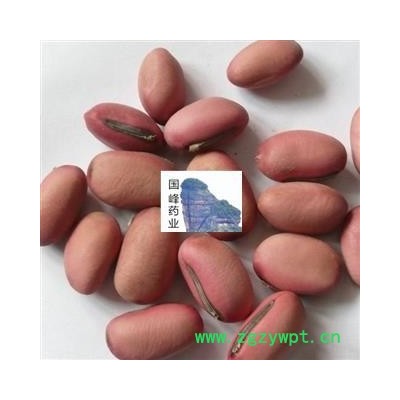[性 状]:该品干燥种子扁肾形或扁椭圆形,长2.5~3.5cm,宽1~2cm,厚0.5~2cm。表面淡红色或红紫色,略有光泽。边缘有灰黑色线形种脐,长1.5~2cm,宽约2mm,种脐上有白色膜状珠柄残余;近种脐一端有凹点状的珠孔,另端有深色合点,种脐与合点间有隆起的种脊。种皮革质,内表面棕绿色而光亮;子叶两片,黄白色,油润。无臭,味淡嚼之有豆腥气。
