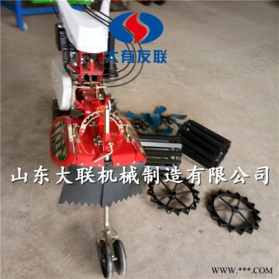 本机器包括机架、可调高低扶手,机架上设有(风冷或水冷)柴油机或汽油机、机架和扶手上设置有变速箱,变速箱的输出轴上设置有能够沿轴移动的驱动轮或链轨.传动方式主要有:全齿轮传动、皮带传动、链条传动三种传动方式.该机具有重量轻,油耗低、相对功率大,结构紧凑、机动性强、操纵轻便灵活的特点。可爬坡、越埂、阶梯性强。广泛适用于平原、山区、丘陵的旱地、水田、果园、菜地、烟地的深旋耕、浅旋耕、犁耕。配上相应机具可进行旱地旋耕、水田旋耕、抽水、开沟、喷淋、喷药除草碎土等作业,还可牵引拖车进行短途运输,是大中型农机无法**的多功能田园管理机,工作稳定可靠、使用寿命长、维修方便等特点。是进入农民家庭很理想的田园管理机。