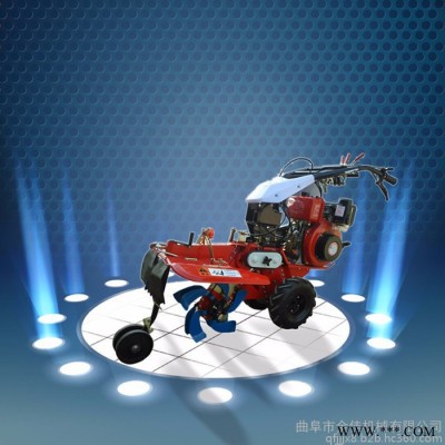 本机器包括机架、可调高低扶手,机架上设有(风冷或水冷)柴油机或汽油机、机架和扶手上设置有变速箱,变速箱的输出轴上设置有能够沿轴移动的驱动轮或链轨.传动方式主要有:全齿轮传动、皮带传动、链条传动三种传动方式.该机具有重量轻,油耗低、相对功率大,结构紧凑、机动性强、操纵轻便灵活的特点。可爬坡、越埂、阶梯性强。广泛适用于平原、山区、丘陵的旱地、水田、果园、菜地、烟地的深旋耕、浅旋耕、犁耕。配上相应机具可进行旱地旋耕、水田旋耕、抽水、开沟、喷淋、喷药除草碎土等作业,还可牵引拖车进行短途运输,是大中型农机无法**的多功能田园管理机,工作稳定可靠、使用寿命长、维修方便等特点。是进入农民家庭**的田园管理机。