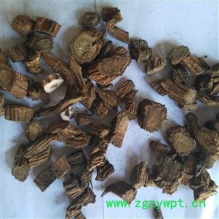 [性 状]:该品根长圆柱形,略扁,微弯曲,长5-15cm,直径0.5-2cm。表面棕褐色或灰褐色,有多数明显而扭曲的纵皱纹及沟纹,并多数明显而扭曲的纵皱纹及沟纹,并可见横长皮孔及少数须根痕。质稍软,久置干燥后变硬。易折断,断面不平坦,皮部绿褐色或淡褐色,木部黄褐色,常呈放射状花纹。气微香,味苦,微甜而后涩。以条粗、质软、皮部绿褐色为佳。