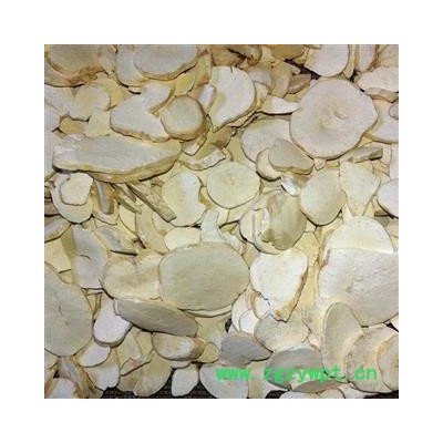 [性 状]:该品呈不规则圆柱形、纺锤形或瓣块状,长8~16cm,直径1.5~5.5cm。表面黄白色或淡棕黄色,有纵皱纹,细根痕及略凹陷的横长皮孔,有的有黄棕色外皮残留。质坚实,断面白色或淡黄色,富粉性,横切面可见黄色木质部,略呈放射状排列,纵剖面可见黄色纵条纹状木质部。无臭,味微苦。