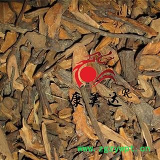 [性 状]:该品根圆柱形,略扭曲状弯曲,长18-22cm,直径0.5-2cm。有时可见侧生支根或支根痕。表面棕褐色,具明显纵皱。顶端有圆柱状根茎或其残基。质坚,稍脆,折断面平整,略具粉质。横断面形成层环明显,皮部淡黄色,木部棕黄色或带粉红色,呈显著放射状排列。气徽,味微苦涩。