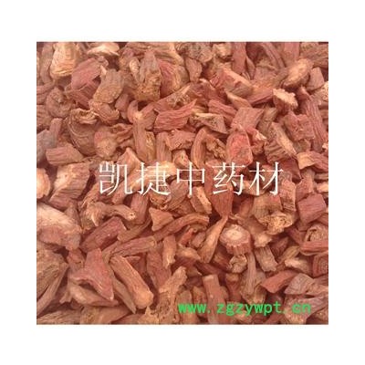 [性 状]:该药材丹参多为带根茎的根,根茎粗短,有茎基残余,下着生多数细长的根。根呈圆柱形,稍弯曲,表面呈砖红色,粗糙,具多数纵沟或皱纹,有须根痕,外部栓皮常鳞片状剥落,皮层有时开裂,长8~22cm,直径5~12mm,质坚脆,易折断,断面不平,疏松有裂隙,皮部棕渴色或砖红色,韧皮部狭。形成层明显,淡棕色,木质部导管束灰黄色或黄白色,放射状排列。气微,味微苦、涩,以条粗壮、色紫红者为佳。