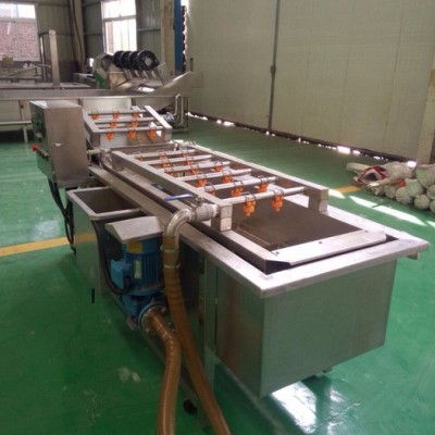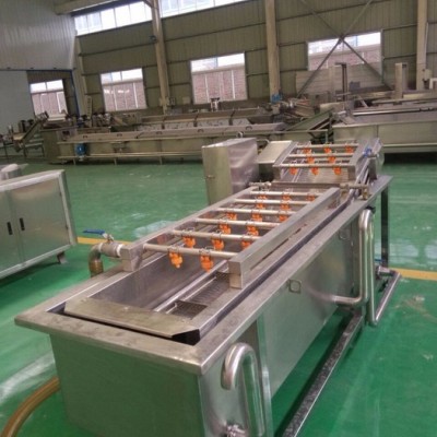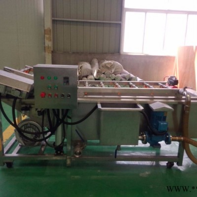山药清洗机气泡清洗机是土豆,大枣,蔬菜,水产生产线中的重要产品,主要用于土豆,大枣,蔬菜,水产的清洗。气泡清洗机的原理主要是利用箱体前部分设备箱体中注适量的水,原料在经过箱体时,会与气泡机和水的结合作用下做翻滚状态,并随网带不断向前推进,在出水面时,高端设有喷淋头,高压冲洗。