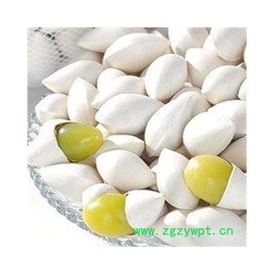 形状:本品呈椭圆形,一端稍尖,另端钝,长1.5~2cm,宽1~1.3cm。 表面白色,平滑,内部中空,有胚芽,断面粉白色。具油性,味微苦。