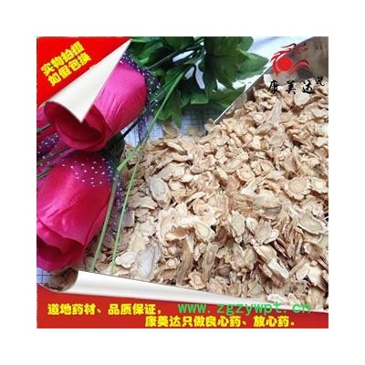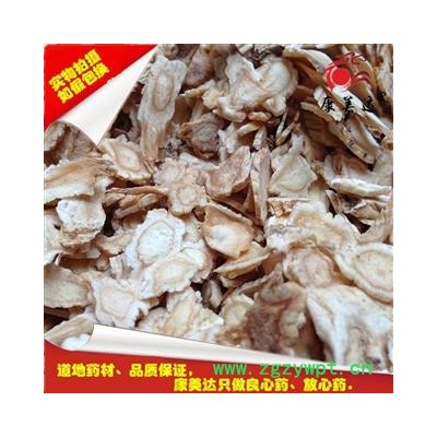 [性 状]:本品呈圆柱形或略呈纺锤形,下部渐细,有的有分枝,略扭曲,长7~20cm,直径0.7~2cm。表面白色或淡黄白色,不去外皮者表面黄棕色至灰棕色;具纵扭皱沟,并有横长的皮孔样斑痕及支根痕。上部有横纹。有的顶端有较短的根茎或不明显,其上有数个半月形茎痕。质脆,断面不平坦,形成层环棕色,皮部类白色,有裂隙,木部淡黄白色。无臭,味微甜后苦。