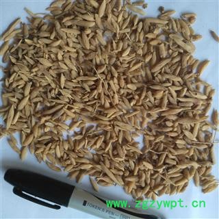[性 状]:本品本品呈纺锤形,两端略尖,长1.2~3cm,直径0.4~0.7cm。表面淡黄色至棕黄色,具不规则纵皱纹。质柔韧,干后质硬脆,易折断,断面淡黄色至棕黄色,角质样,中柱细小。气微,味甜,嚼之发黏。