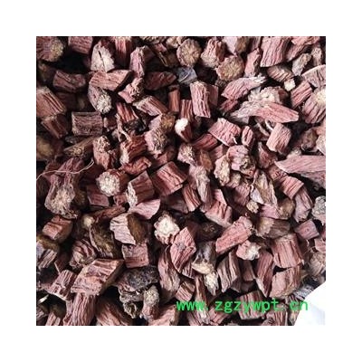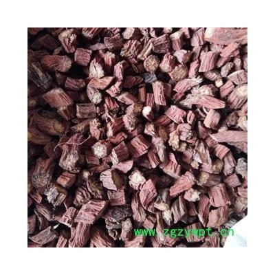 [性 状]:该药材丹参多为带根茎的根,根茎粗短,有茎基残余,下着生多数细长的根。根呈圆柱形,稍弯曲,表面呈砖红色,粗糙,具多数纵沟或皱纹,有须根痕,外部栓皮常鳞片状剥落,皮层有时开裂,长8~22cm,直径5~12mm,质坚脆,易折断,断面不平,疏松有裂隙,皮部棕渴色或砖红色,韧皮部狭。形成层明显,淡棕色,木质部导管束灰黄色或黄白色,放射状排列。气微,味微苦、涩,以条粗壮、色紫红者为佳。