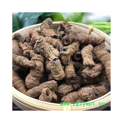 [性 状]:根扁圆柱形式圆柱形,略弯曲,长度不等,直径1-2cm,表面灰黄色或灰黄棕色,有的微带紫色,具纵皱及深陷的横纹,有的呈缢缩状或皮部横向断离而露出木部,形如鸡肠。质坚韧,折断面不平,皮部厚5-7mm,淡紫色,木部直径2-4mm。气微,味苦,略涩。