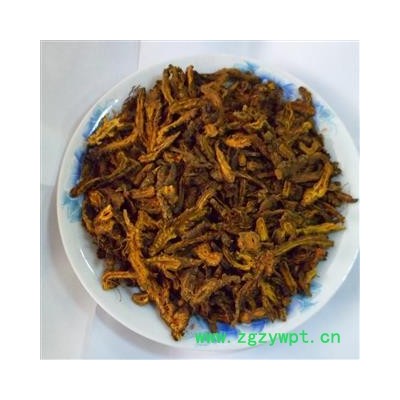 [性 状]:该品鸡爪连有碎渣及粉末状,味极苦,药材多数聚集成簇,常常弯曲,形如鸡爪,习称“鸡爪连”,其单枝根茎长3-6厘米,直径0.3-0.8厘米。表面粗糙,有不规则结节状隆起,有须根及须根 残基。节间表面平滑如茎杆,习称“过桥”。其上部多残留褐色鳞叶,顶端常留有残余的茎或叶柄。表面灰黄色或黄褐色。质硬,断面不整齐,皮部橙红色或暗棕色,木部鲜黄色或橙黄色,呈放射状排列,髓部有时中空。气微,味极其苦。