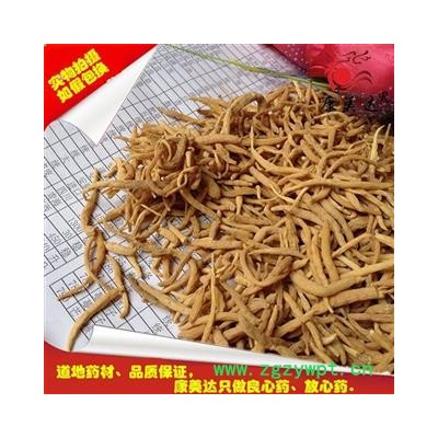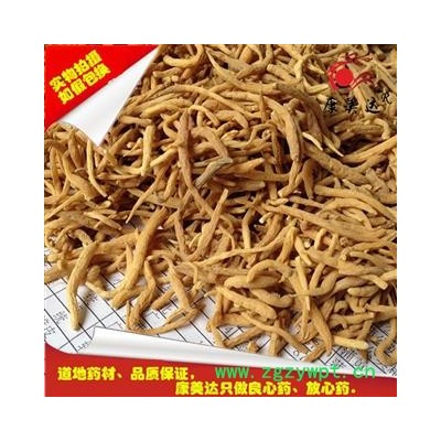 [性 状]:本品呈细长纺锤形或细长条形,稍弯曲,长3~10cm,直径0.2~0.6cm。表面黄白色,较光滑,微有纵皱纹,凹陷处有须根痕。顶端有茎痕。质硬而脆,断面平坦,淡黄白色,角质样;或类白色,有粉性。气微,味微甘。
