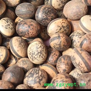 【药材性状】深褐色卵形带花纹,干燥果实